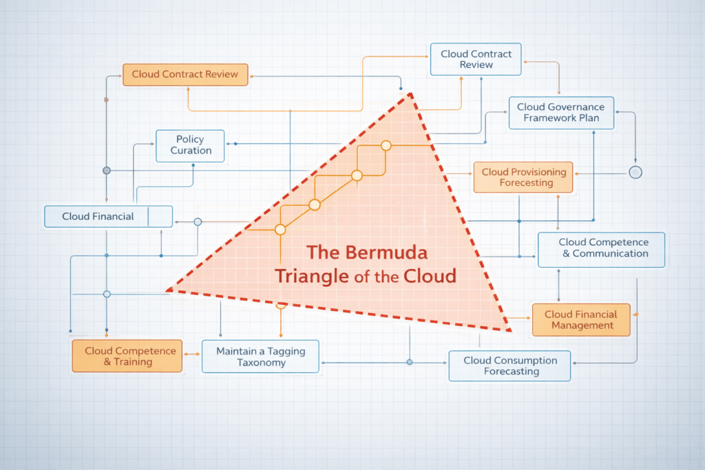 Most cloud management programmes fail not because the individual processes are wrong, but because nobody mapped how they connect. If you ever wondered why report data is incomplete, or optimisation opportunities seem to ‘fall into a black hole’, the lack of connection between processes is the reason why!
